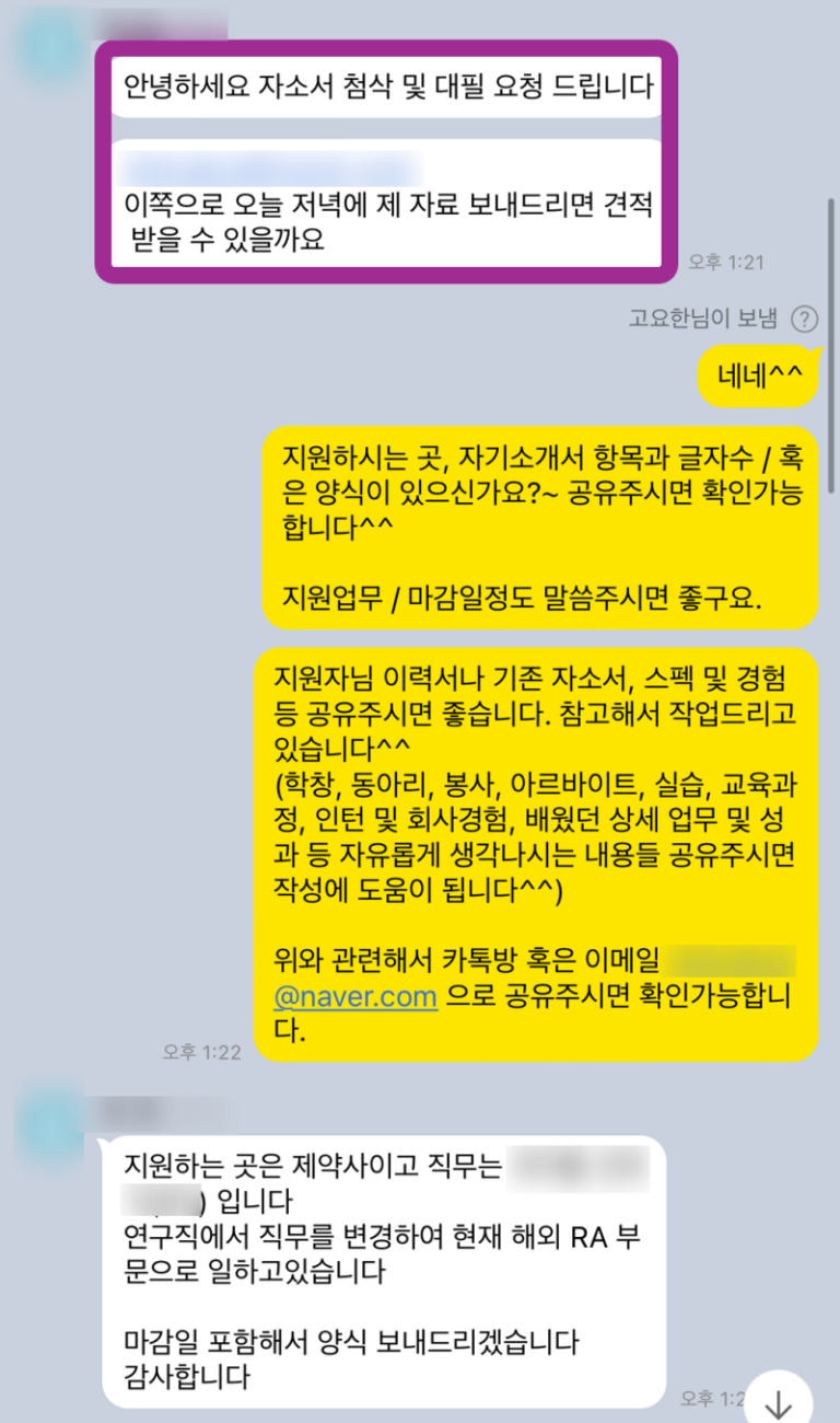 저에게 자소서 첨삭/대필을 의뢰하는 과정은 다음과 같습니다.